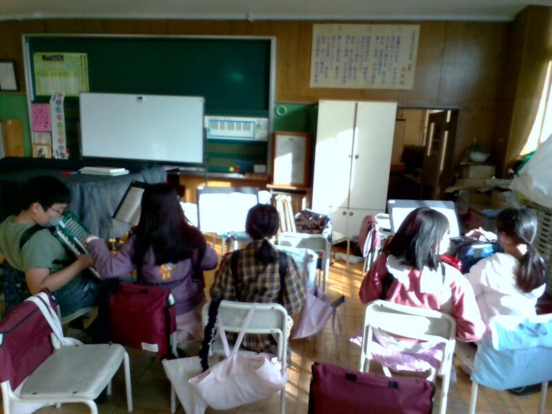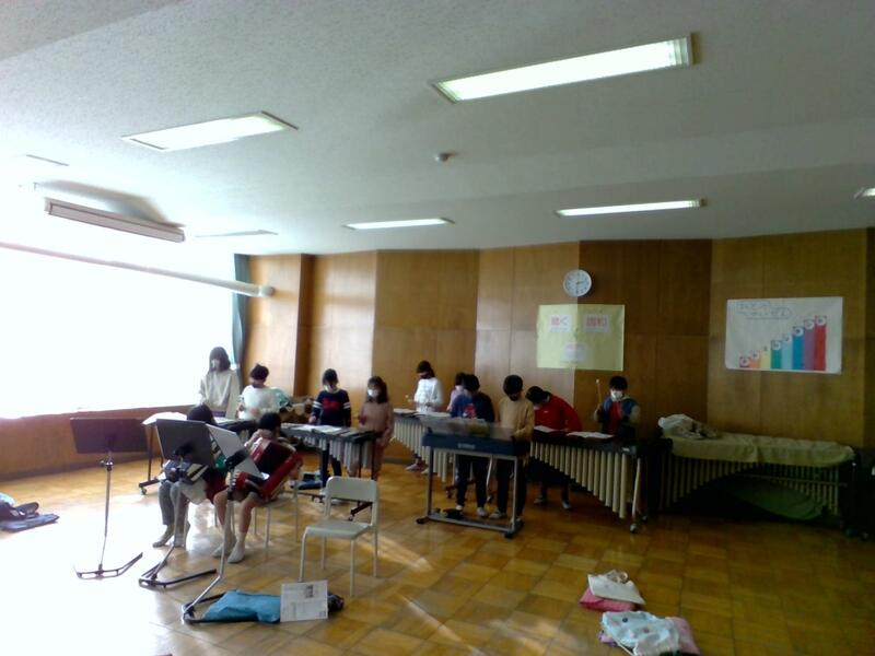 グループで異なる曲を演奏しているのですが、同じ楽器のメンバー同士、褒め合いながら、(楽器の数に限りがあるので)譲り合いながら練習しています。