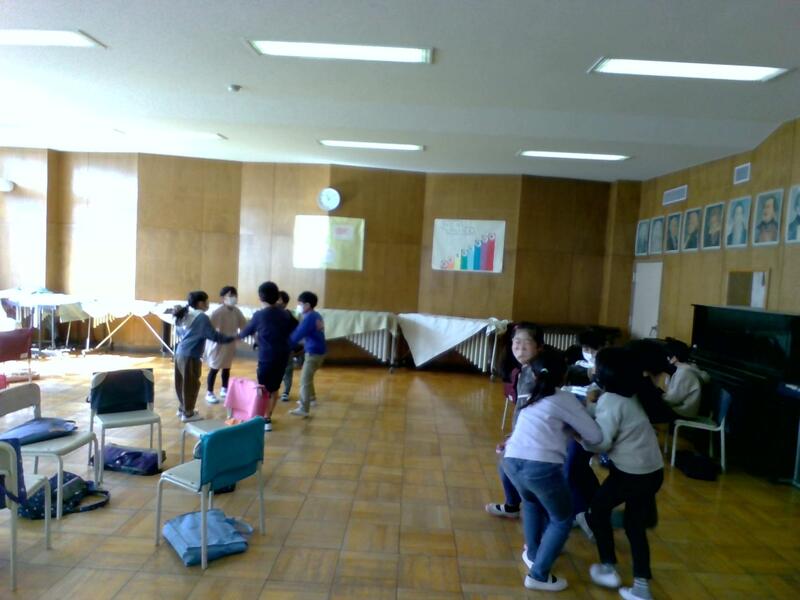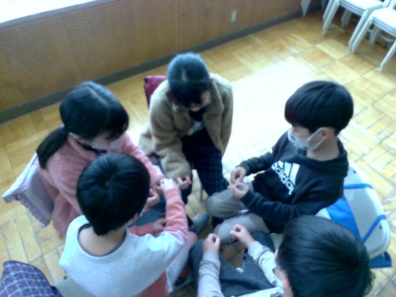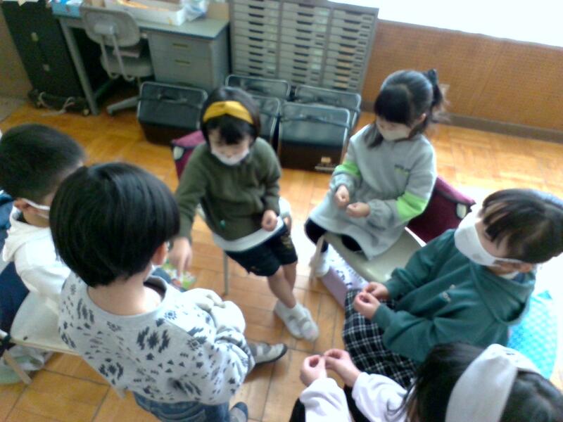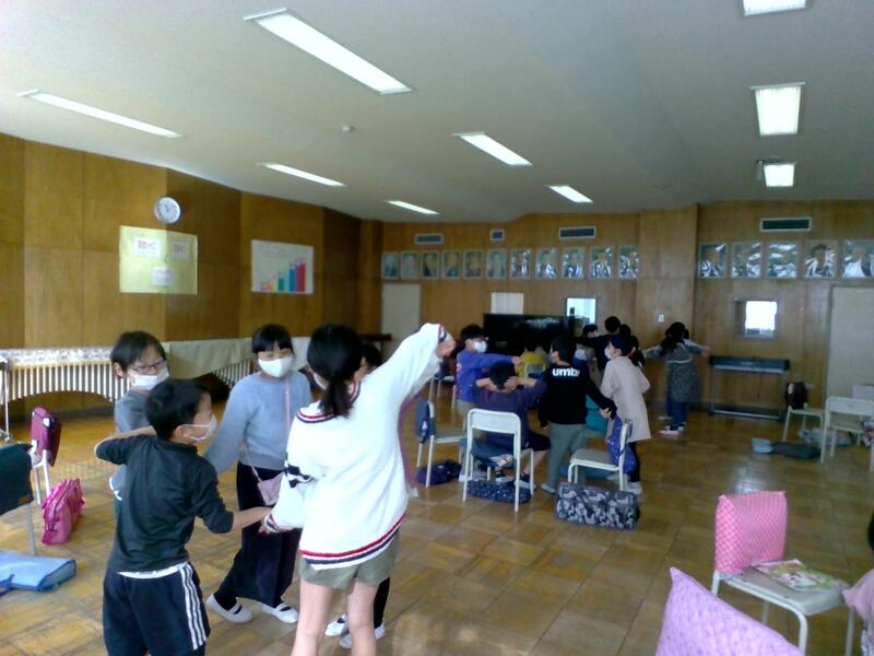 低学年の4クラスには「あそびうた(わらべうた)は、室内でもできるので、雨の日の過ごし方の1つのアイディアにしてほしい。」と伝えました。