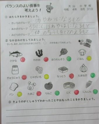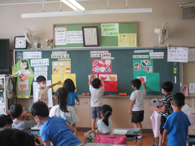 その後、今日の給食メニューの食材を分類しました。
