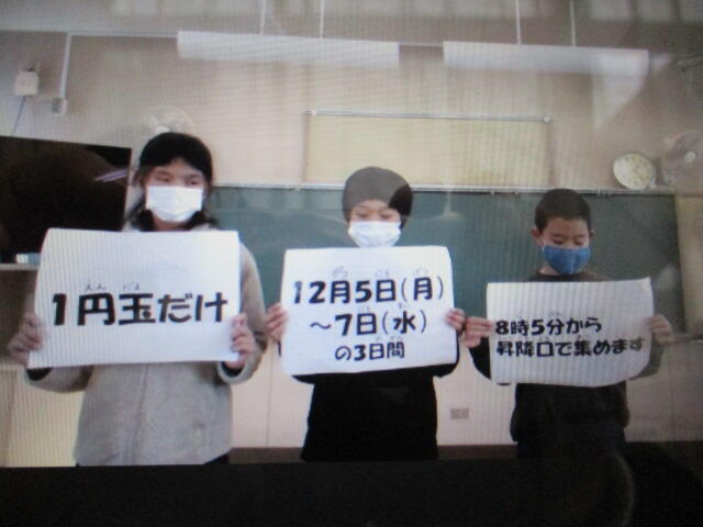 12月5日(月)〜7日(水)の3日間、代表委員が玄関の昇降口で募金活動を