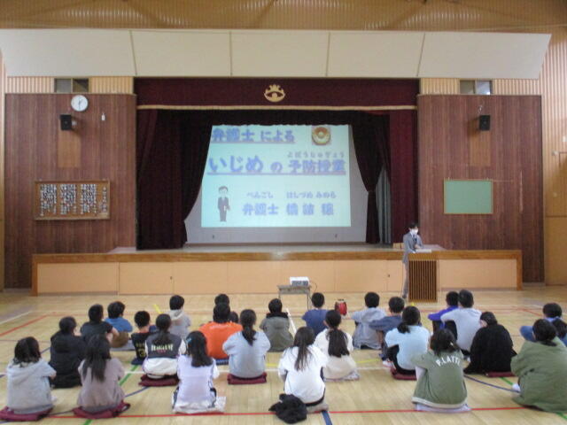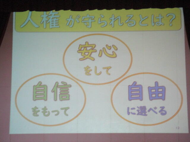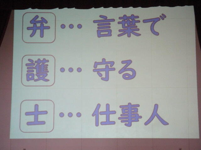 最初に弁護士の仕事や人権について、スライドを使いながら