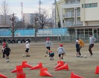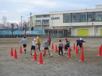その後、ボール運動(サッカー)に取り組みましたが、ボールタッチの練習やゴールに向かってのシュートなど、楽しみながらも懸命に取り組むことができていました。