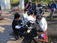 グループ活動の後、サバンナキッチンが混雑していたため、「はやし広場」へ移動して、昼食を食べました。たくさん歩いた後でしたので、お腹も空き、みんな嬉しそうにお弁当を食べていました。