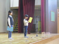 児童代表の言葉では、3年生の子どもたちが、それぞれ芸術発表会でリコーダーの演奏練習を頑張ったことや来学期は、理科や社会科のテストで100点を取ることを目標にしていること等、堂々と伝えてくれました。とても立派でした。