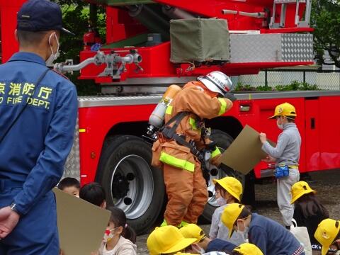 そんな子どもたちのためにと、消防士さんが、クイズや質問の時間をつくってくださいました。