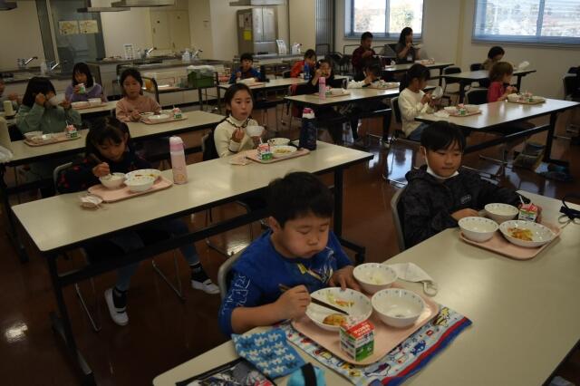 給食センターに戻ると、給食が完成をしていて、少し早めの給食を食べました。学校の外で食べる給食は格別なものだったようです。