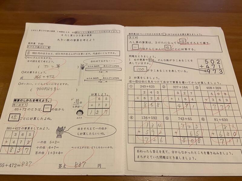 3〜5年生は「ノートにはりましょう」と書いてある課題が配られていますね。