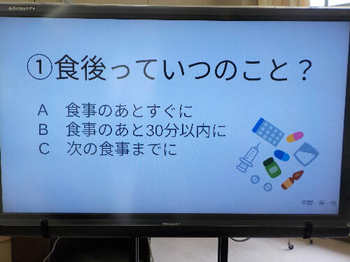 薬の話をしました。身の回りのことはもちろん、自分の体調にも目を向け、