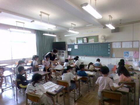 各教室では、クラスや児童の実態にあった課題やプリントに取り組んでいました。難しい問題でも、ヒントを出すと「あっそっか!」「わかった!」などの声が聞こえてきました。夏休みの宿題以外にも意欲的に取り組む姿に感心しました。サマーアップも残り一日となりました。明日も元気な子どもたちと会えるのを楽しみにしています。