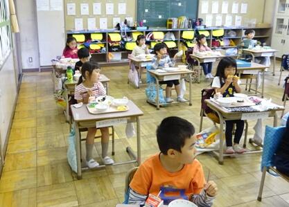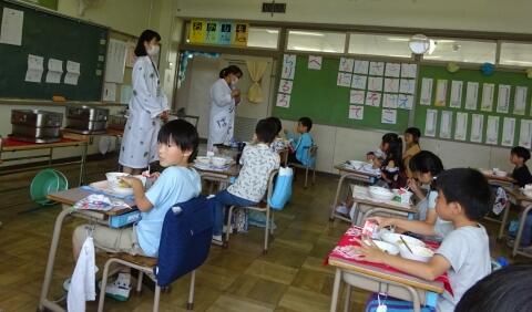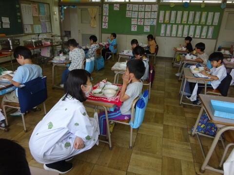 給食の時間、栄養士さんが給食の様子を見にいらっしゃいました。