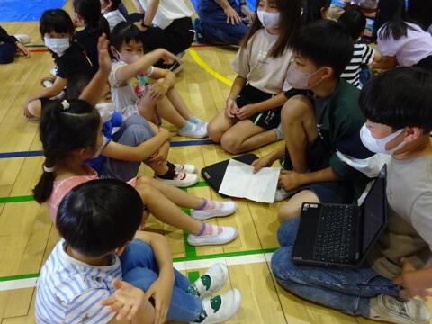 木曜日のロング昼休みの縦割り班活動では、班ごとに校庭や教室で遊びました。