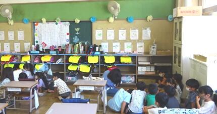 朝、準備が早く終わった子に、6年生が読み聞かせをしてくれています。いつも楽しみにしています。