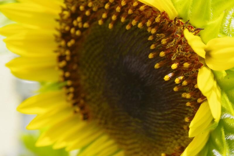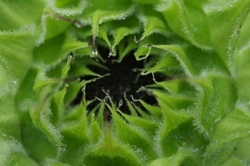 まだ黄色い花は見えてきませんが中から黒いつぶつぶがのぞいていますね。