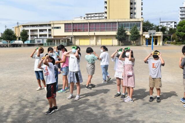 遮光レンズを使って太陽を観察するなどして学びを深めています。