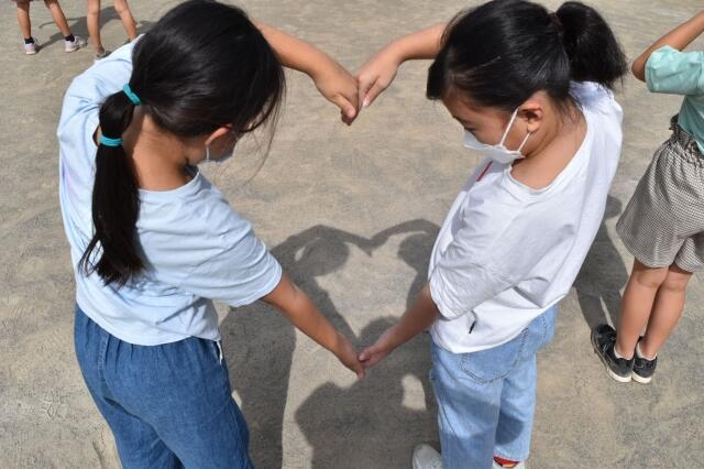 校庭に出たので、国語の学習「ちいちゃんのかげおくり」に出てくるかげおくりをみんなでしてみました。