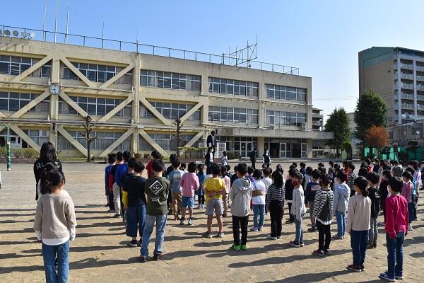 初めての全校朝会でしたが、体育の授業で学習した整列の方法を実践し、