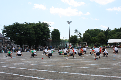 低学年の玉入で白が負けたから、白のみんなは「取り返すぞ!!」赤組のみんなは練習では一度も勝てなかったから、「本番では負けないぞ」と。