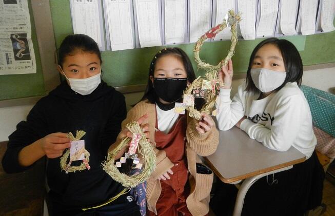 完成したしめ縄飾りを見て満足そうな子供たちの顔が印象的でした。