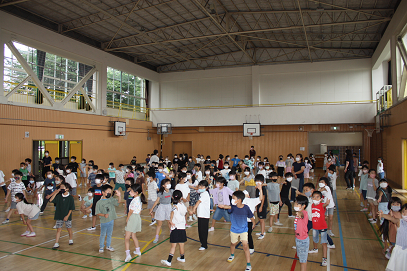 1~3年生は、体育館で活動していました。低学年のお手本として、緊張しながら取り組み、教室に帰ってきたときは、いい表情でした。