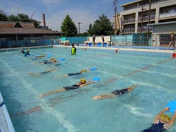 念願の水泳の授業!入れてよかったね。とっても気持ちよさそう。けのび・クロール・平泳ぎの練習をしました。再来週には着衣泳も予定しています。