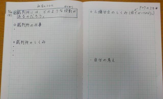 6年 5月26日(火)の社会・道徳の学習のまとめ方について