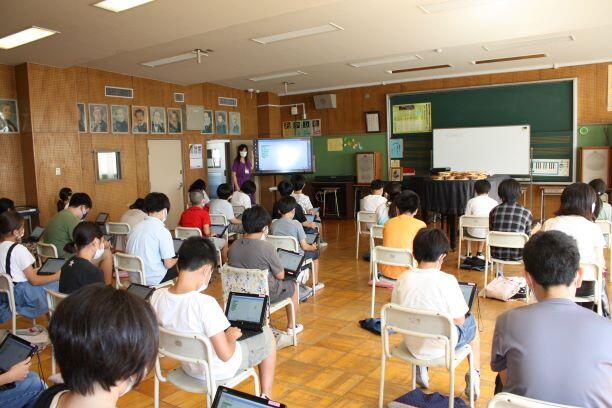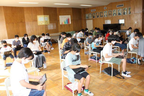 校歌のアレンジをしました。1人1フレーズを担当しました。次の時間に「答え合わせ」をします。