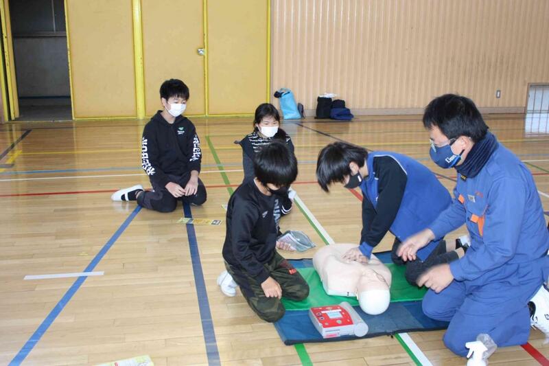 AEDの使い方も訓練しました。見る方も行う方も真剣です。