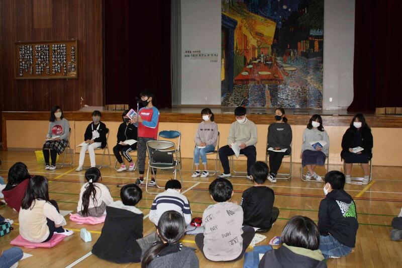緊張して声が小さくなっても大丈夫!!聞き手が近づいて聞いてくれました。聞き手の真剣な顔に、ドキドキしながらも嬉しい6年生でした。