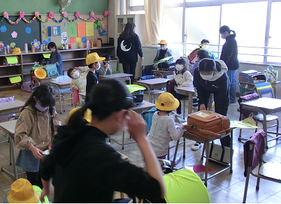 入学式の次の日から、クラスから数名ずつ順番に、1年生の朝の準備の手伝いをしに行っています。手洗い、消毒をして教室へ入る。教科書等を机の中にしまい、ランドセルを片付ける等。1年生に付いて一つ一つ丁寧にお世話をしてあげています。「大変~」と言いながら何だか楽しそうな顔をしています。