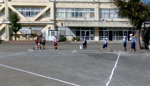今日は1組と2組で合同でベースボール型のゲームを行いました。