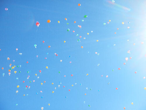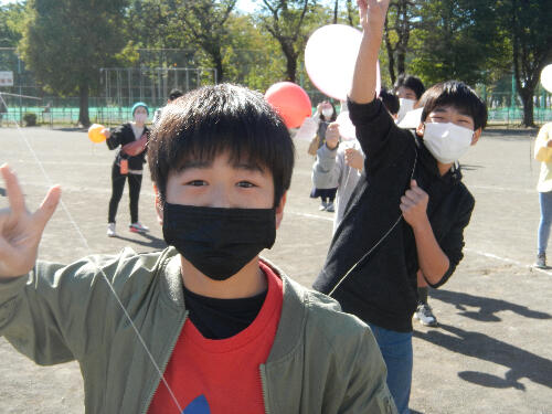バルーンリリースです。空に上がる風船に「きれい。」「すごい。」などの声が聞こえました。