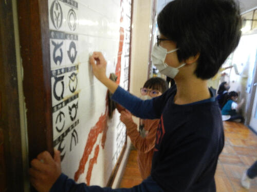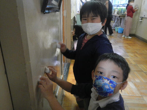 1年生と一緒に壁をピカピカに磨いてくれました。