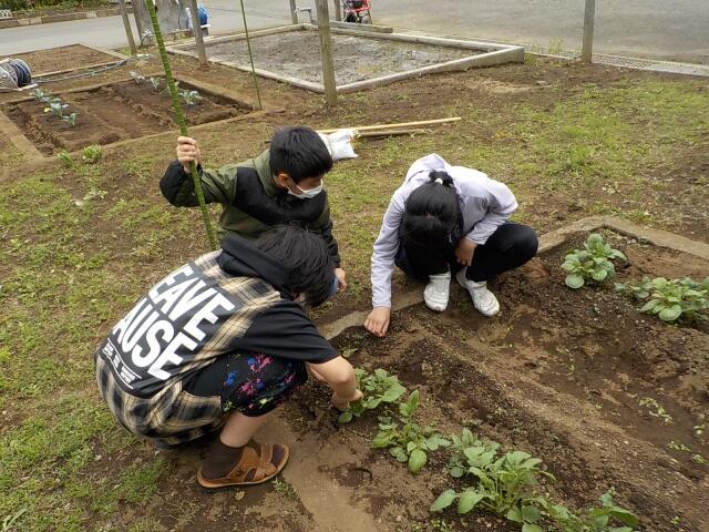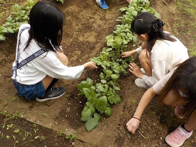 今日は、たくさんじゃがいもに栄養がいくように雑草抜きと芽欠きを行いました。昨日までの天気とは違い、暑い中でしたが一生懸命取り組んでいました。