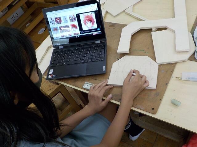 本当に1枚の板から作り上げるため、完成するのがとても楽しみです。今日、6年2組では図工の授業があったため、少しのぞいて見ると・・・