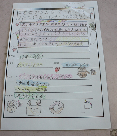 先日、回覧板でお知らせしてもらうために大山自治会事務所に行ってくれたみんな、ありがとう。Sさんいつも孫のように声をかけてくださってありがとうございます。私達担任のことも娘(←ちょっと図々しかな)や息子のように優しい言葉をかけてくださって嬉しいです。