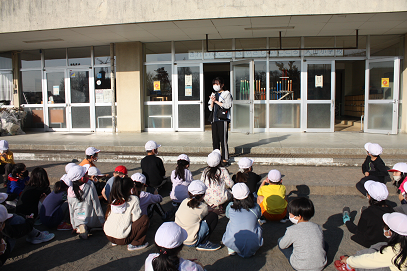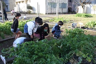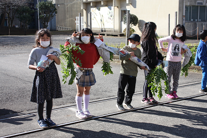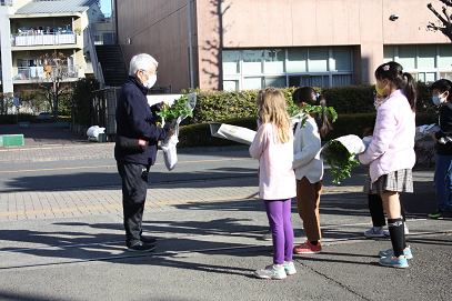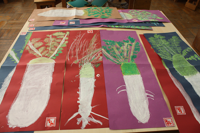 「みずみずしい大根いかがですか・・・」「美味しかったですよ」と宣伝していました。これもまた、先日持ち帰った大根をご家庭で調理し、一緒に食べてくださったおかげです。保護者の方の感想もありがとうございました。