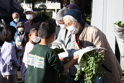 金曜日宮下さんと一緒に育てた大根を地域の方々にもらっていただきました。地域の方々は、時間より早くに来て待っていてくださいました。「立派な大根ね」「大きくなるの見てたのよ。」「葉っぱも青々として立派に育ったね」と口々にお褒めの言葉をいただきました。金曜日の夕方、早速地域の方から「千切りにして塩もみをして美味しくいただきました。」とお礼の電話をもらいました。