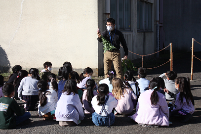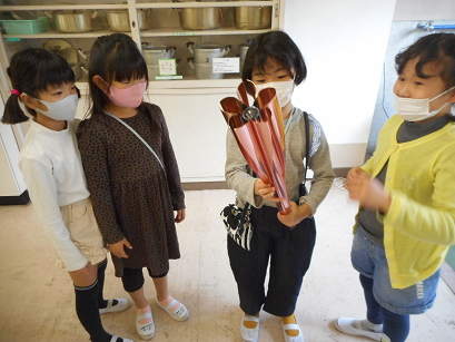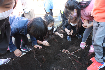 サツマイモも掘りました。これは、体験だけとなります。「先生は、焼き芋して食べるの?」という質問に、「先生は、お芋はあまり好きじゃないんだよね。」といったら「サザエさんは大好きだよ。」って。確かに、サザエさんはいつも焼き芋屋さんを追いかけているねと思いました。