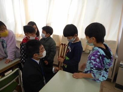 パラリンピックのトーチには点字が書いてありました。実際に見るのが初めての子どもが多く、「何て読むのかな?」と興味深そうに眺めていました。四年生で点字の勉強をするのでその時に書いてあったことが読めるようになるといいですね。