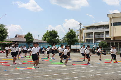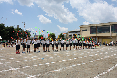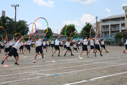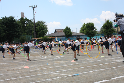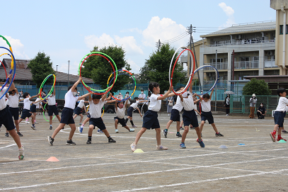 *フラフープを使った表現です。一人技、二人技、そしてクラス全員での技など、練習の成果を発揮して堂々と表現していました。腰でフラフープを回す技は本当にすごい!見ていて思わず大きな拍手を毎回してしまうほどでした。