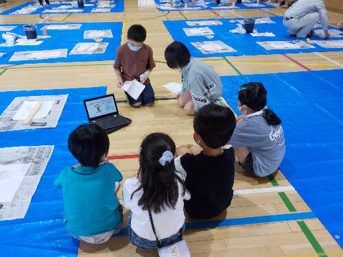 次に、市の担当の方の説明を聞きながら、アートウォールの作成に取り組みました。