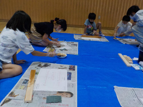 材料となる木材に、やすりをかけ、表面がなめらかになるようにします。