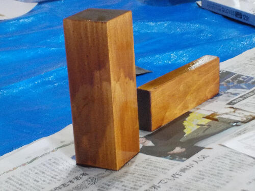 表面がつるつるしてきたら、オイルに顔料を溶かした塗料を塗っていきました。