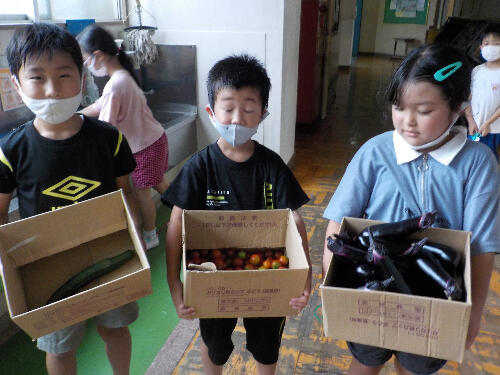 子どもたちは採れた野菜を順々に持ち帰りました。