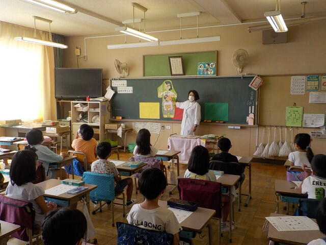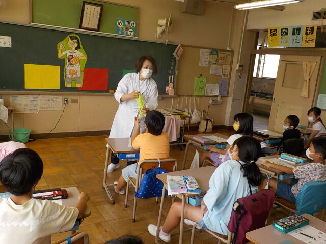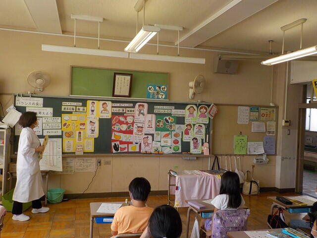遅くなりましたが、給食調理場の栄養士さんによる食育の出前授業の様子をお伝えします。