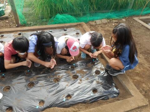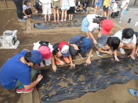 子どもたちは、一粒一粒丁寧に種まきをしていました。