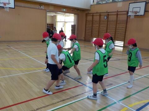ボールと仲良くなったら、チームに分かれてゲームを行いました。