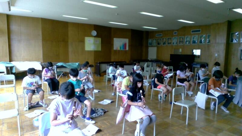 コロナ禍で実際に音を出して演奏することはできませんが、演奏する時の姿勢・リコーダーの持ち方・ソラシドレの運指(指づかい)を学習しました。