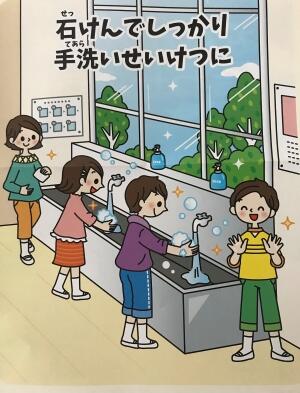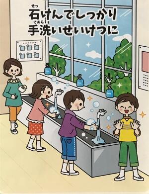 登校後、授業後、休み時間で、適宜手洗い指導を行います。