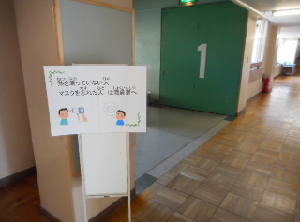 検温やマスクを忘れた人は、教室に入る前に対応します。